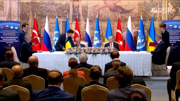 В итоге 22 июля Россия и Украина по отдельности заключили с Турцией так называемую продуктовую сделку. Как сообщил министр обороны Сергей Шойгу, подписанный в Стамбуле пакет документов включает два соглашения. Первый предполагает подключение ООН к снятию ограничений на экспорт российской сельхозпродукции и удобрений, а второй определяет алгоритм вывоза украинского зерна из черноморских портов.