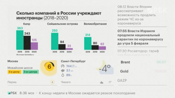 По расчетам Kartoteka.ru, на восьмерку стран, чьи лица чаще всего становятся учредителями компаний в России (Кипр, Сейшелы, Великобритания, Германия, Белоруссия, Нидерланды, США, Китай), в 2020 году пришлось 458 компаний (32%). Наиболее значительно количество учрежденных компаний упало для Сейшельских островов (с 293 до 22 за три года) и Великобритании (с 214 до 62).