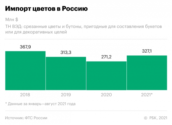 Ввоз цветов из Белоруссии в Россию упал почти на $100 млн — до $14,9 млн. Это связано с тем, что перестала действовать «белорусская схема», при которой несколько операторов освобождались от НДС при ввозе цветов